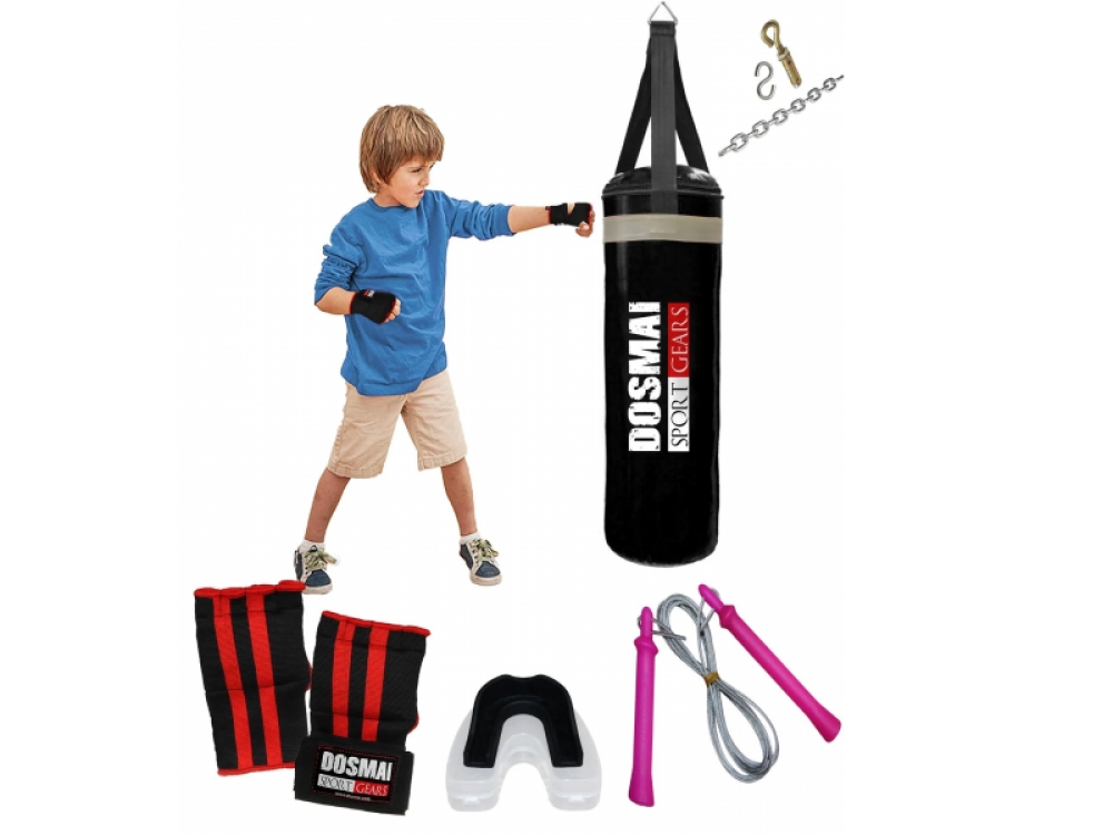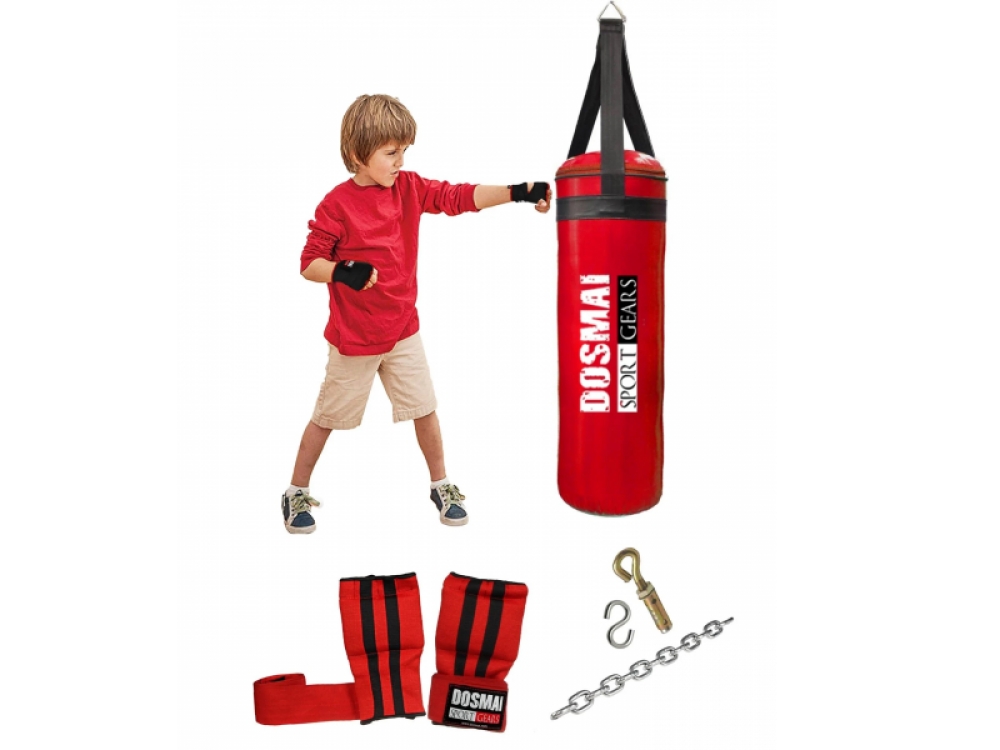 ÇOCUK BOKS SETİ 60X20CM KUM TORBASI - BANDAJ ELDİVEN SETİ DOSMAİ ÇBS992